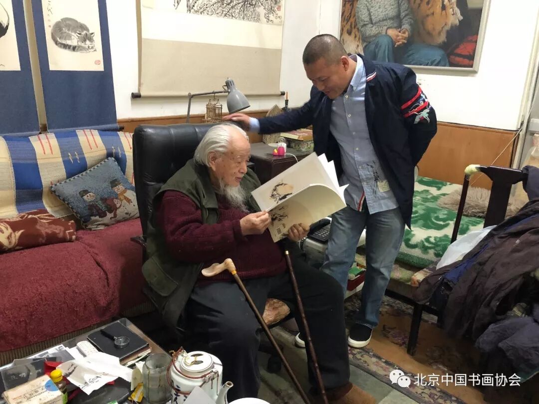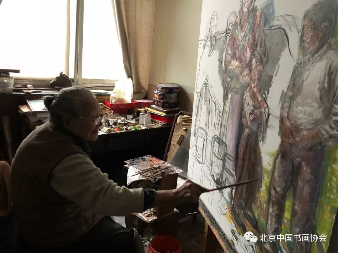 焦广盛会长与中央美术学院壁画系郭长江老师,昨日拜会了侯一民老先生和爱人邓澍老师,深感两位老人的指导,受益良多;同时钦佩两位老人对绘画艺术的追求,如今近百岁高龄,却还在创作,对绘画精益求精。